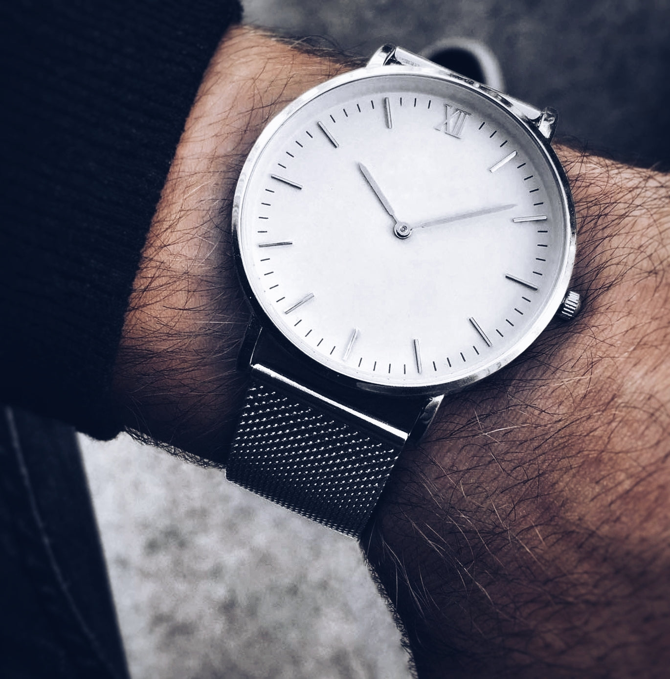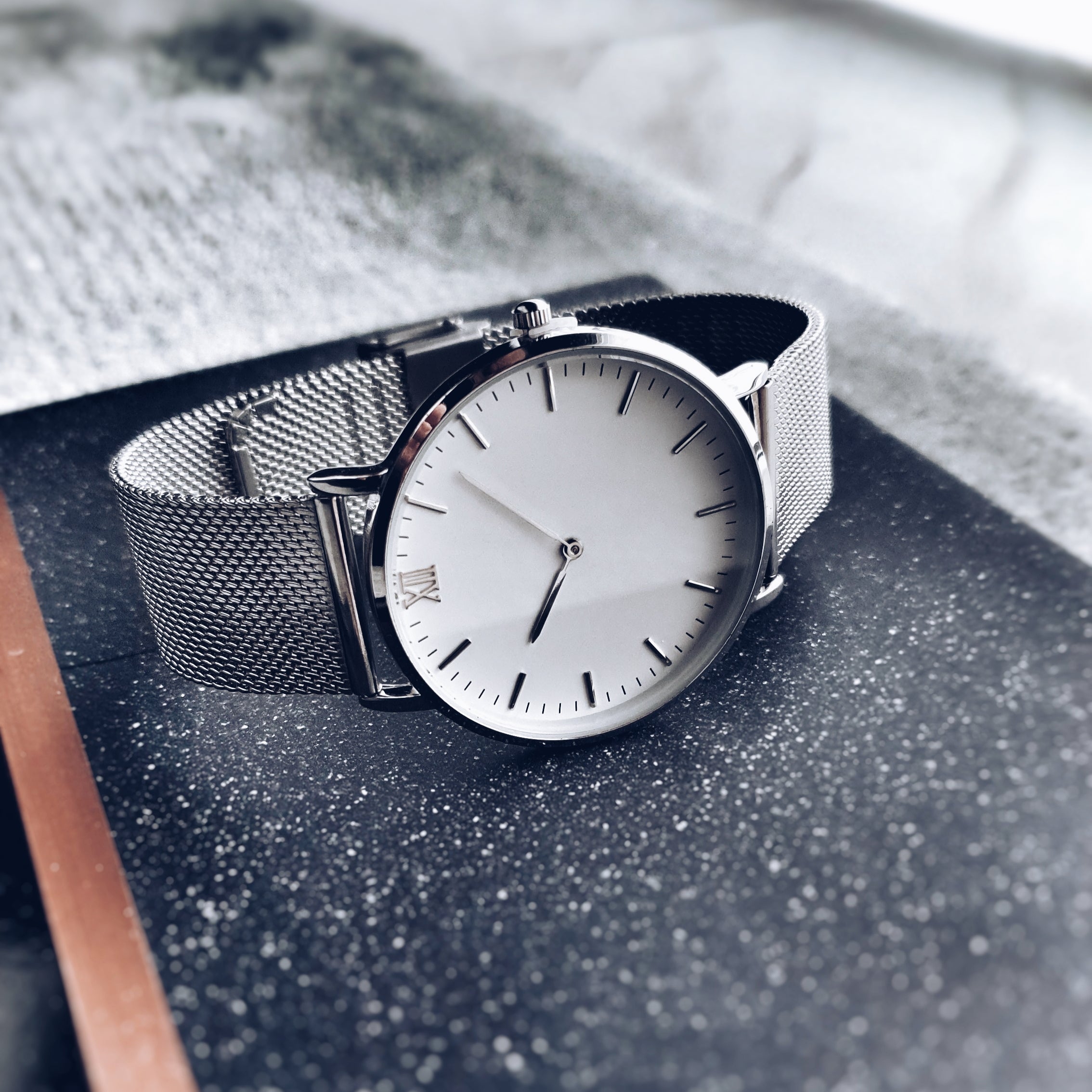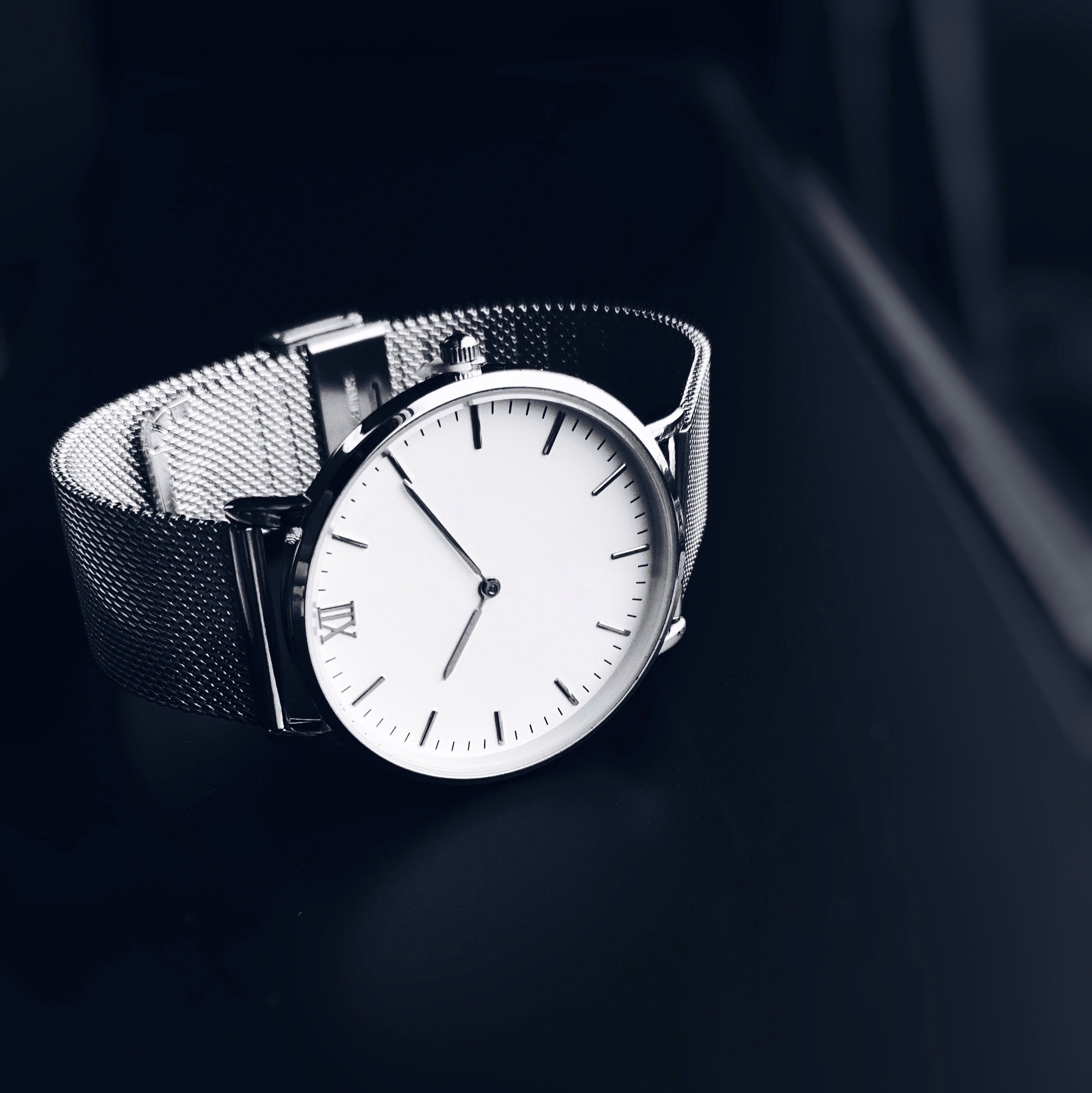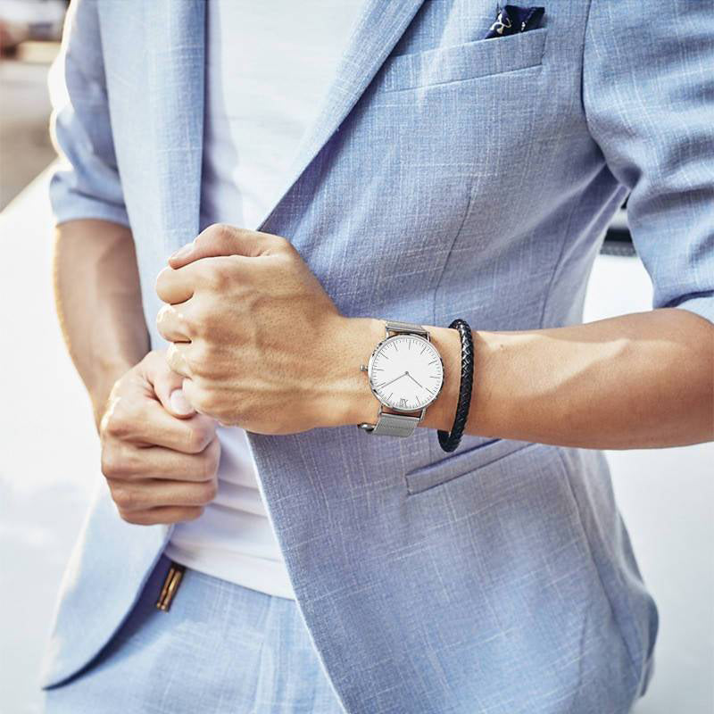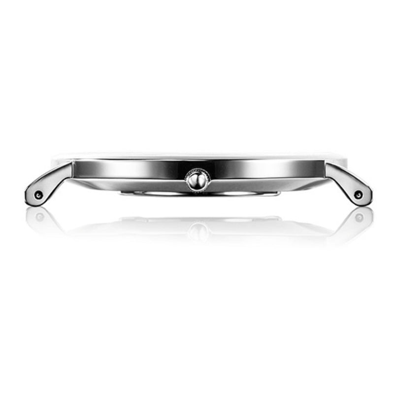 The watch has no visible branding logos, for the clean, sophisticated look.