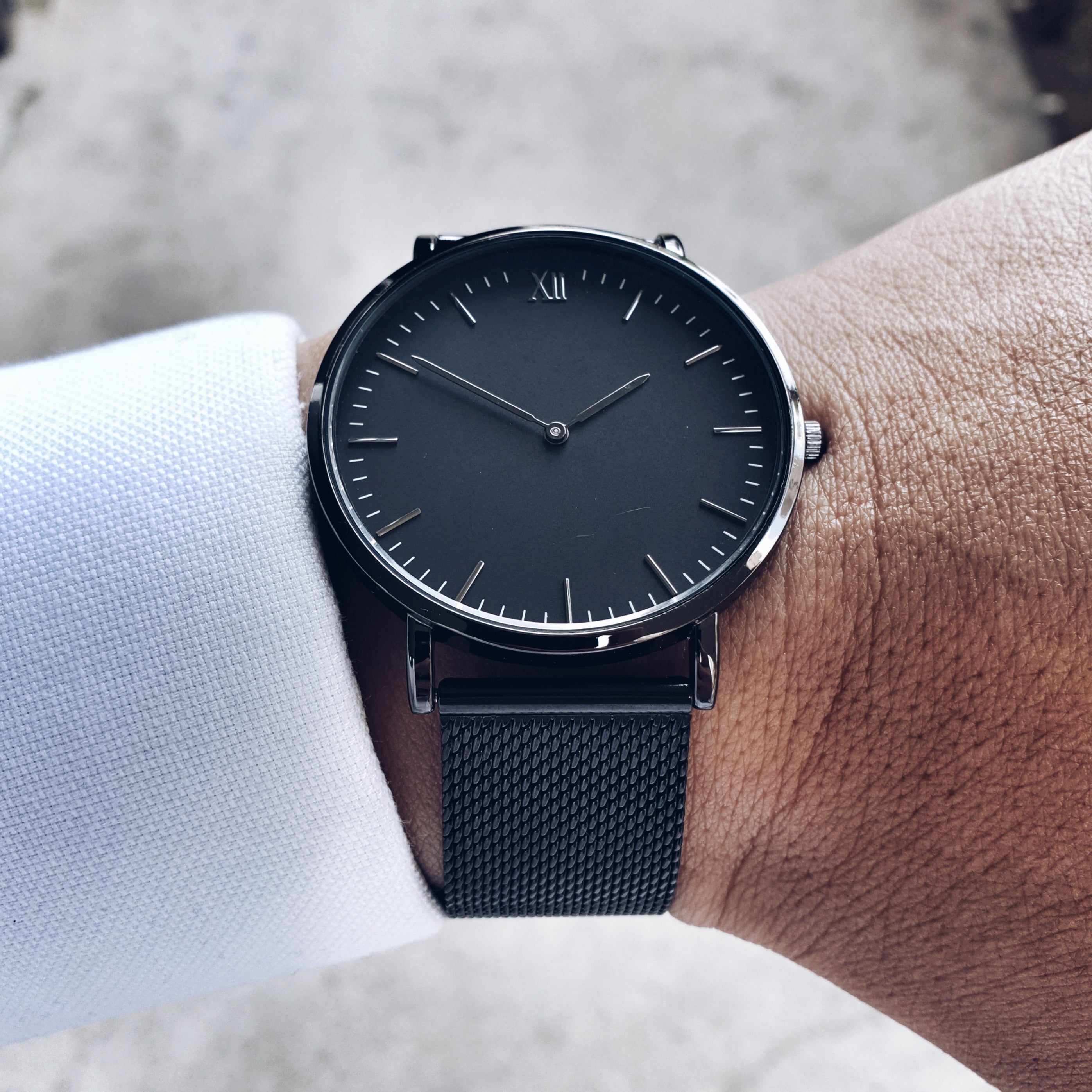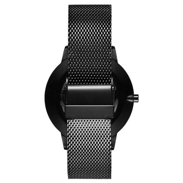 The Xerxes XII Phantom watch has a matte black dial, paired with reflective time markers that look brilliant in the light. The watch has no visible branding logos, for the clean, sophisticated look.